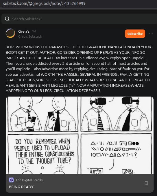 How to read The Digital Scrolls: Because Substack is pushing use of their app to read while downplaying the “Read Online” option, to avoid launching the IEEE soul trap app, simply click the title of the article in the subscriber email you have received. For your edification, links to further information are in blue, or sometimes bolded white, depending on the font size: a Substack limitation. To never miss vital content, these newsletters are always best read online instead of the email you received, due to real-time additions and corrections. Be sure to follow me (here’s how) to get notifications for my Notes, where in between Scrolls I communicate additional pertinent information between larger articles. Of course, hyperlinks are in blue and should not be disregarded by the reader.I highly suggest printing my articles as local PDFs for offline reading. Due to the medium, composition is done online, and I have designed it for easy reading on a black background. Thank you, and I pray you are enriched by my work as a watcher.
